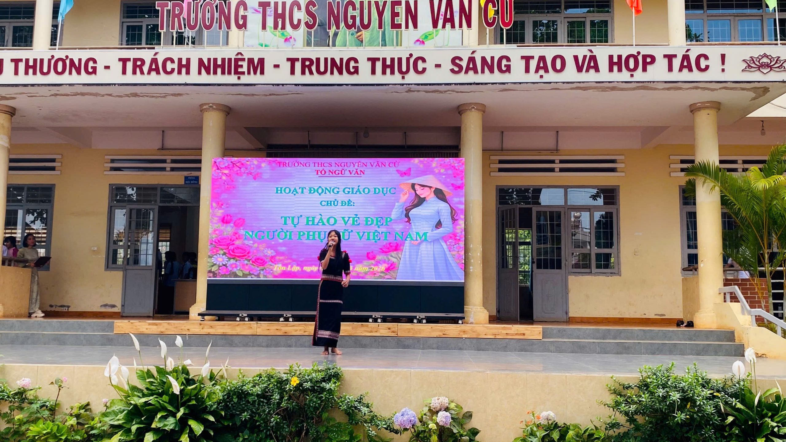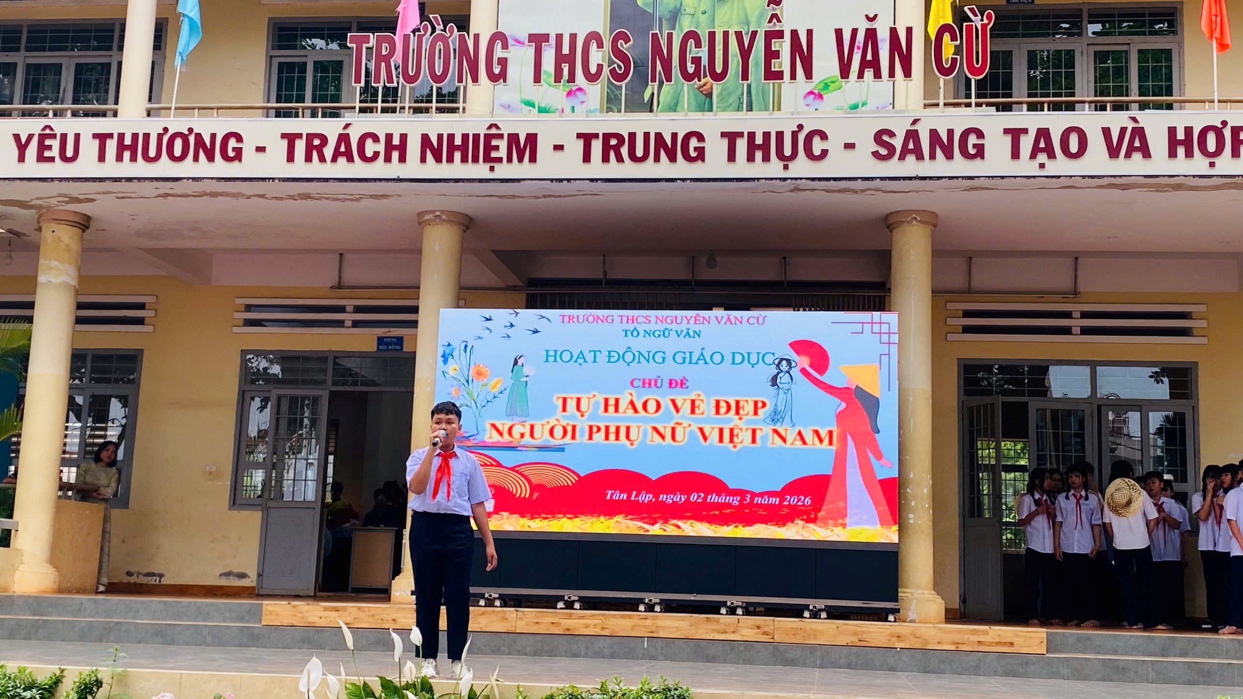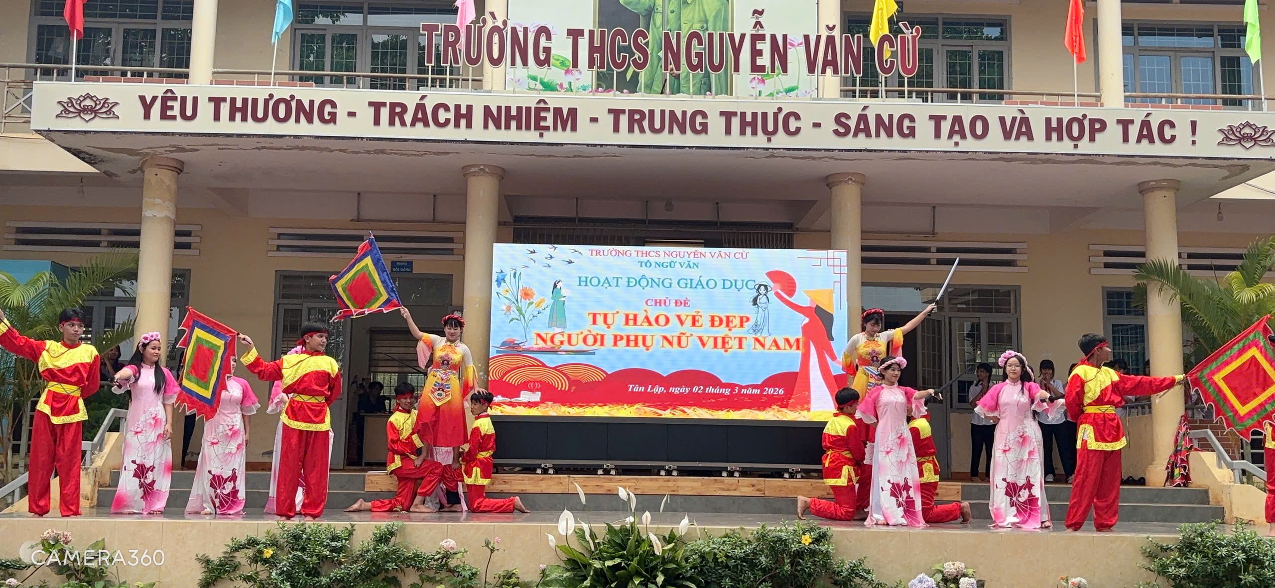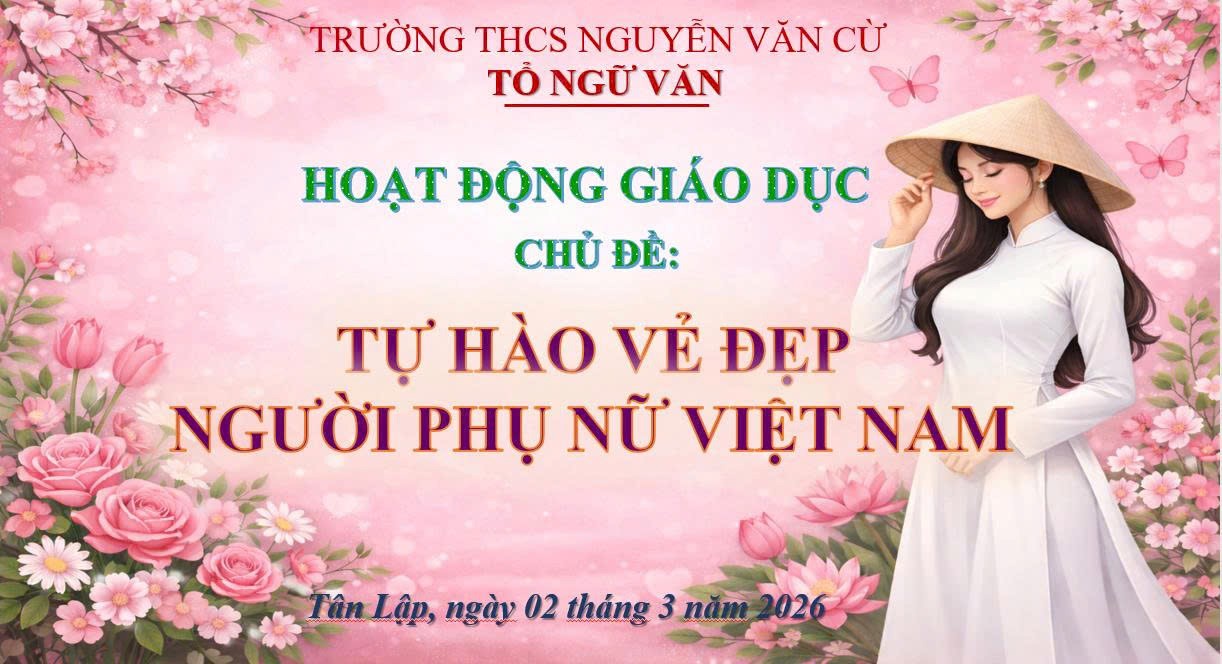 Trên dòng chảy văn hóa hàng nghìn năm của dân tộc, hình ảnh người phụ nữ Việt Nam luôn tỏa sáng với những phẩm chất cao đẹp: “anh hùng – bất khuất – trung hậu – đảm đang, và trong đời sống hôm nay vẫn tiếp tục năng động – tự tin – bản lĩnh”. Nhằm tôn vinh, tri ân và gửi những lời chúc tốt đẹp nhất đến những đóa hoa rực rỡ của cuộc đời; ngày 02/03/2026 trong không khí ấm áp và tươi đẹp của mùa xuân, Tổ Ngữ văn trường THCS Nguyễn Văn Cừ tổ chức Hoạt động giáo dục với chủ đề: “Tự hào Vẻ đẹp người phụ nữ Việt Nam”