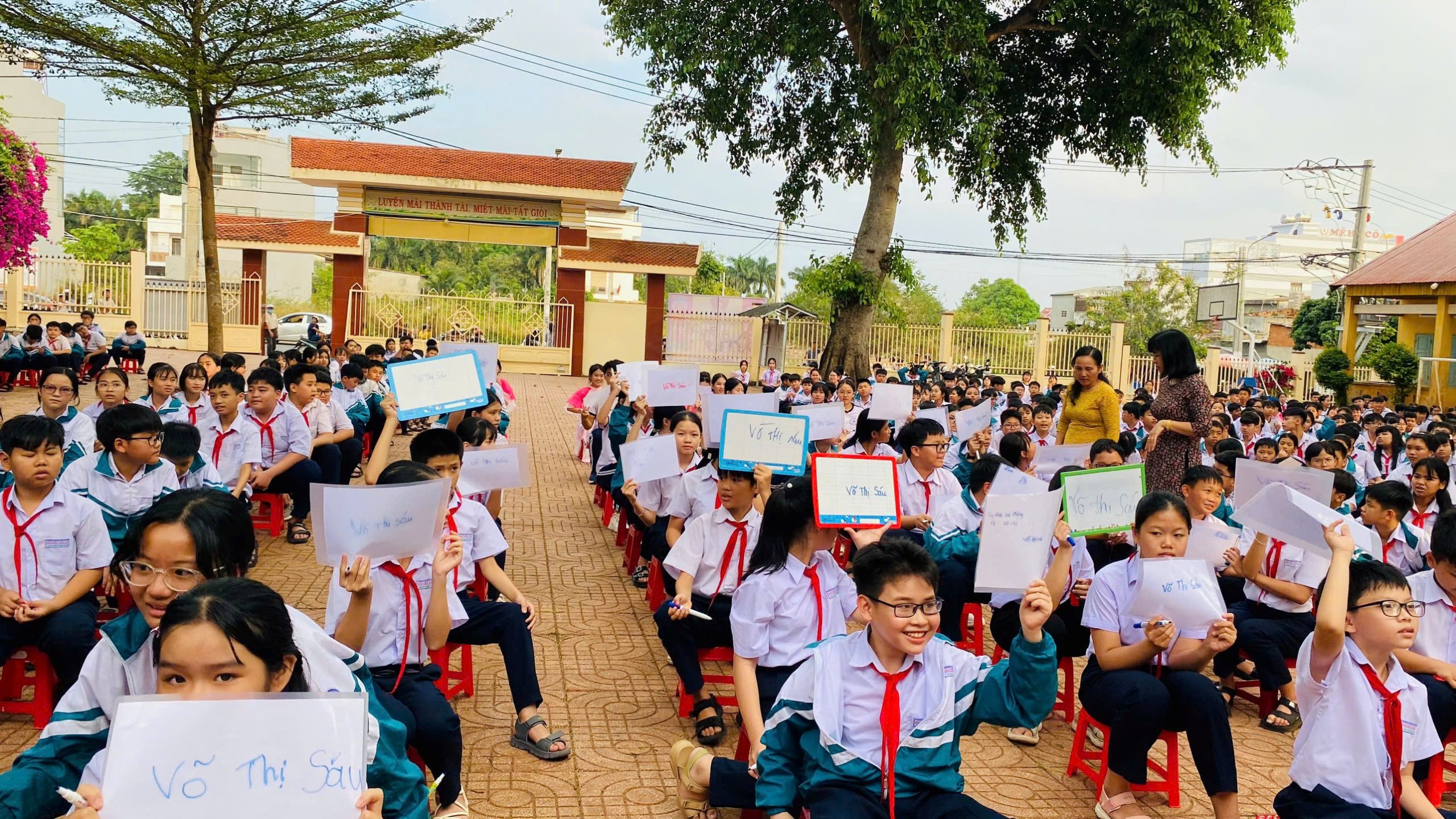 Các em học sinh phấn khởi khi tham gia phần thi “rung chuông vàng” đã thể hiện rõ sự hiểu biết và lòng ngưỡng mộ về người phụ nữ Việt Nam.
